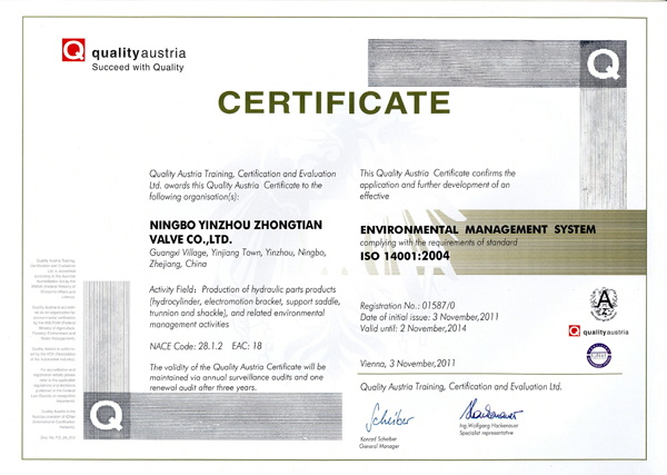 中天通過(guò)ISO 14001:2004環(huán)境管理體系認(rèn)證